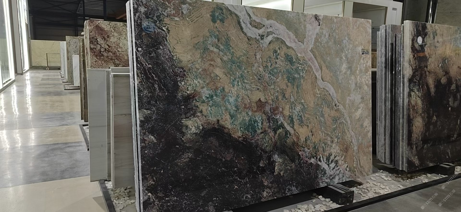 新景印象石畫館常年庫(kù)存玉石、奢石、山水畫,現(xiàn)貨大板近15萬(wàn)平方,品種齊全,庫(kù)存豐富,可滿足不同客戶群各個(gè)價(jià)位板面需求。為客戶提供了更全面的選擇空間。未來(lái),這里更將被打造成為華東地區(qū)天然背景石材選材中心。\