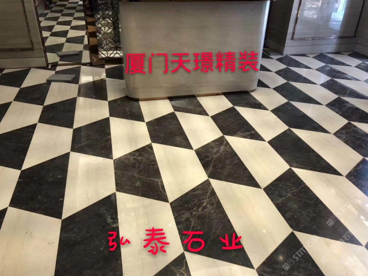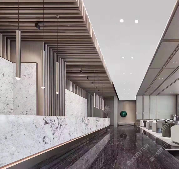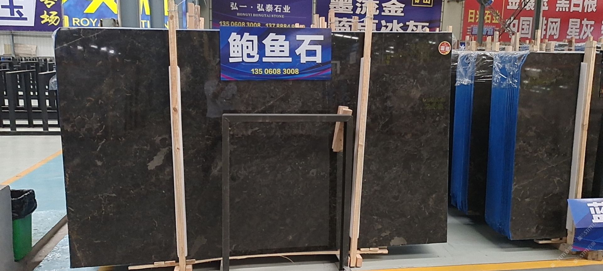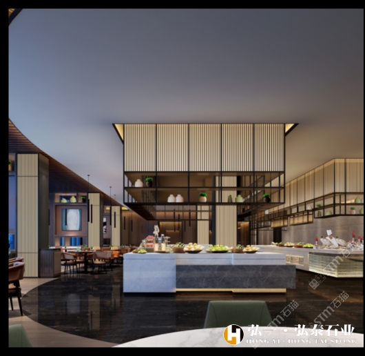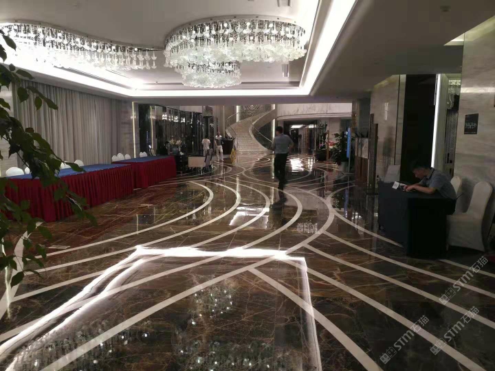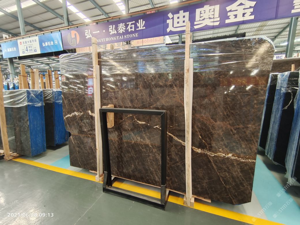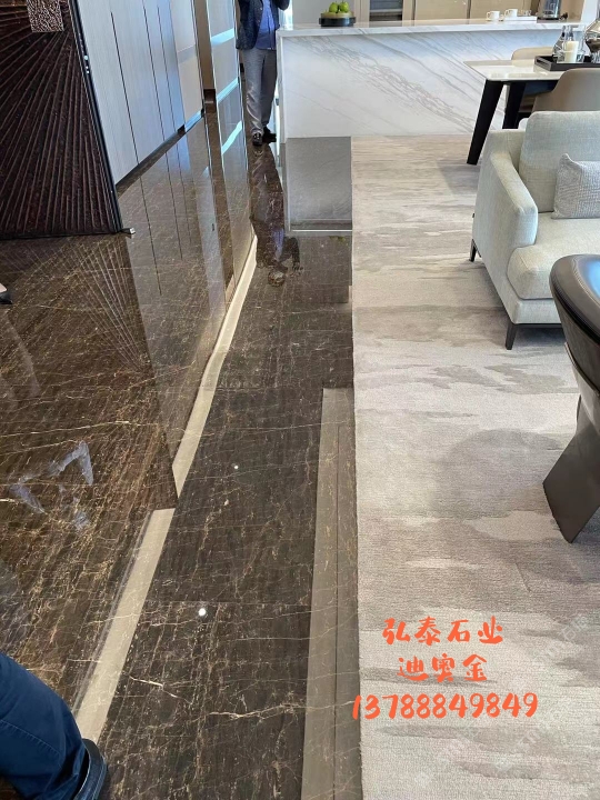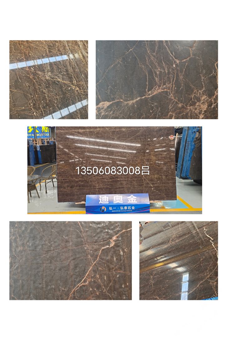 2015年,弘一集團(tuán)董事長(zhǎng)王星華在廈門展展會(huì)上與迪奧金礦主不期而遇。王星華對(duì)迪奧金表示出了極大的興趣,隨后應(yīng)邀到達(dá)礦山實(shí)地考察,在全面了解了礦山的運(yùn)營(yíng)狀況、產(chǎn)品狀況以及特性之后,王星華果斷地拿下了迪奧金及墨流金礦山的代理權(quán),并為此成立了一個(gè)單獨(dú)的石材貿(mào)易部——弘泰石業(yè),該部門由黃青海著手經(jīng)營(yíng)。 In 2015, Wang Xinghua, the chairman of Hongyi Group, met the owner of DiorGold Mine unexpectedly at the Xiamen Exhibition. Wang Xinghua expressed hisgreat interest in Dior Gold Mine, and later was invited to make on-the-spotinvestigation of the mine. After a comprehensive understanding to the operationstatus, product status and characteristics of the mine, Wang Xinghua decisivelysigned an agreement with Dior Gold Mine to get its exclusive agency, andestablished a separate stone trade department for this purpose -- Hongtai StoneIndustry, which is operated by Huang Qinghai. 弘泰石業(yè)經(jīng)營(yíng)地址位于水頭鎮(zhèn)福山工業(yè)區(qū)弘一大板市場(chǎng)一期5號(hào)通道D7-D14。弘泰石業(yè)主營(yíng)品種為迪奧金、墨流金、延河黑。其中迪奧金和墨流金年開采量達(dá)15000m3,水頭長(zhǎng)期庫(kù)存現(xiàn)貨各20000㎡,荒料5000噸。能夠即時(shí)滿足采購(gòu)商的大量采購(gòu)需求。 Located in D7-D14, No.5 Passageway, Hongyi Slab Market Phase I, FushanIndustrial Zone, Shuitou Town, Hongtai Stone is mainly engaged in such productseries as Dior Golden, Ink Flow Golden, Yanhe Black. Among them, the annualmining yield of Dior Golden and Ink Flow Golden is up to 15,000m3, and thestock spotting of each of these two series in Shuitou warehouse is at 20000㎡, with a quantity of quarry stone at 5000 tons, which can instantly meetbulk purchasing needs of the purchasers. ?▲弘泰石業(yè)賣場(chǎng) ▲ Sales Market of Hongtai Stone 迪奧金底色偏深,表面賦以金黃色及少量白色的線狀紋路,板面表現(xiàn)力非常搶眼,材質(zhì)能適用于各種不同的異型加工方式,是的優(yōu)質(zhì)工裝材料,不同于以往的黑色系大理石帶來(lái)的沉重感,迪奧金帶來(lái)的更多的是時(shí)尚感與尊貴感。 As a rare high-quality material for industrial decoration, Dior golden hasa dark background color, with a small amount of golden yellow and white lineson its surface. The surface expressiveness is very eye-catching, and itsmaterial can be applied to various special-shaped processing methods. Unlikethe feeling of heaviness of black marble in the past, Dior Golden brings morefashion and dignity. 與此同時(shí),墨流金與延河黑帶來(lái)的表現(xiàn)力同樣不俗,整體表面風(fēng)格質(zhì)樸大方,莊重肅穆,經(jīng)過(guò)設(shè)計(jì)師的巧妙搭配亦能成為整體空間之中的點(diǎn)睛之筆。 And, the expressiveness brought by Ink flow golden and Yanhe black is alsonot hackneyed. The overall surface style is simple and elegant, solemn andsober, and it can become the highlight of the whole space through ingeniouscollocation by designers.