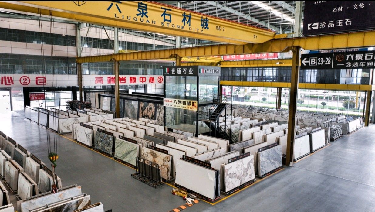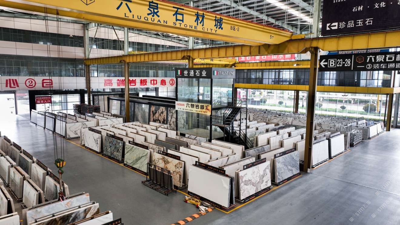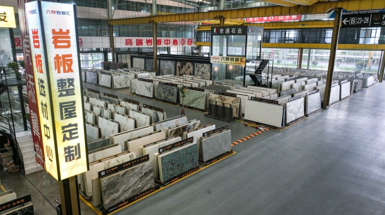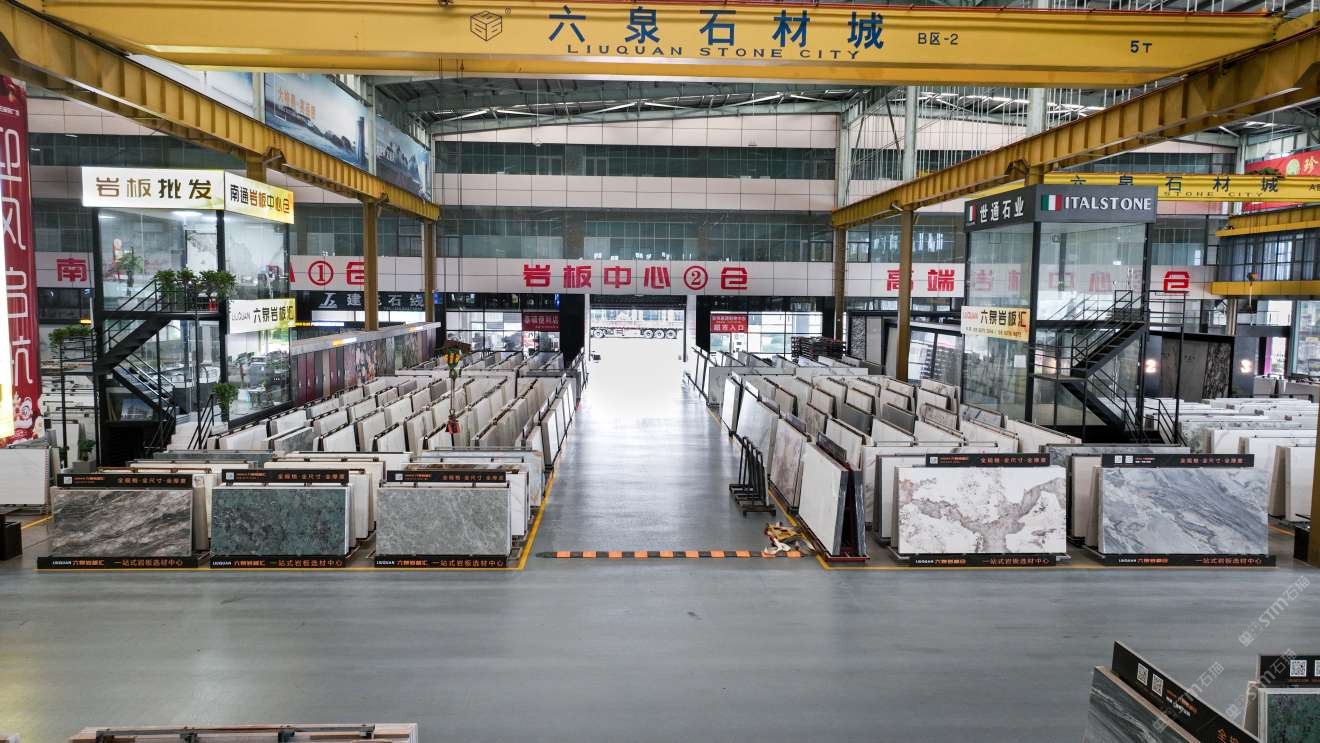 中國(guó)江蘇南通六泉石材城3號(hào)通道六泉巖板中心倉(cāng)
