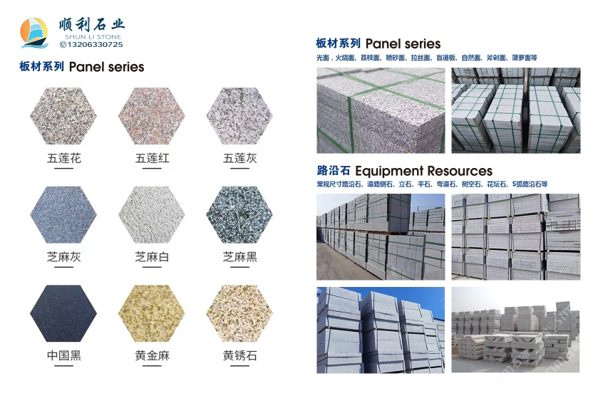 五蓮縣順利石材有限公司位于"花崗巖之鄉(xiāng)"山東省日照市五蓮縣街頭鎮(zhèn)石材產(chǎn)業(yè)園,南鄰日照港30公里,東距青島港110公里,日東高速、222省道貫通境內(nèi),交通極為便利。 公司成立至今,已擁有多片體組合鋸、紅外線數(shù)控切割機及各種加工機多套,礦產(chǎn)資源儲備豐富。是一個集石材工藝加工、產(chǎn)品銷售、石材工程承建為一體的綜合性石材企業(yè)。 產(chǎn)品有五蓮紅、五蓮花、五蓮灰、芝麻灰、黃金麻、芝麻白、芝麻灰、山東白麻、櫻花紅、珍珠花等多種花崗巖板材,臺階石、路沿石、 S 型路沿石,異型路沿石,弧形彎道石,蘑菇石、火燒板、機刨板、等各種異形石材。多年來,產(chǎn)品銷往全國各地。五蓮花崗巖板材被評為省優(yōu)、部優(yōu)產(chǎn)品。并得到了廣大用戶的認可及社會各界的好評。 公司始終堅持:"客戶至上,質(zhì)量,誠信為本,追求"的經(jīng)營方針。歡迎廣大客戶光臨惠顧。