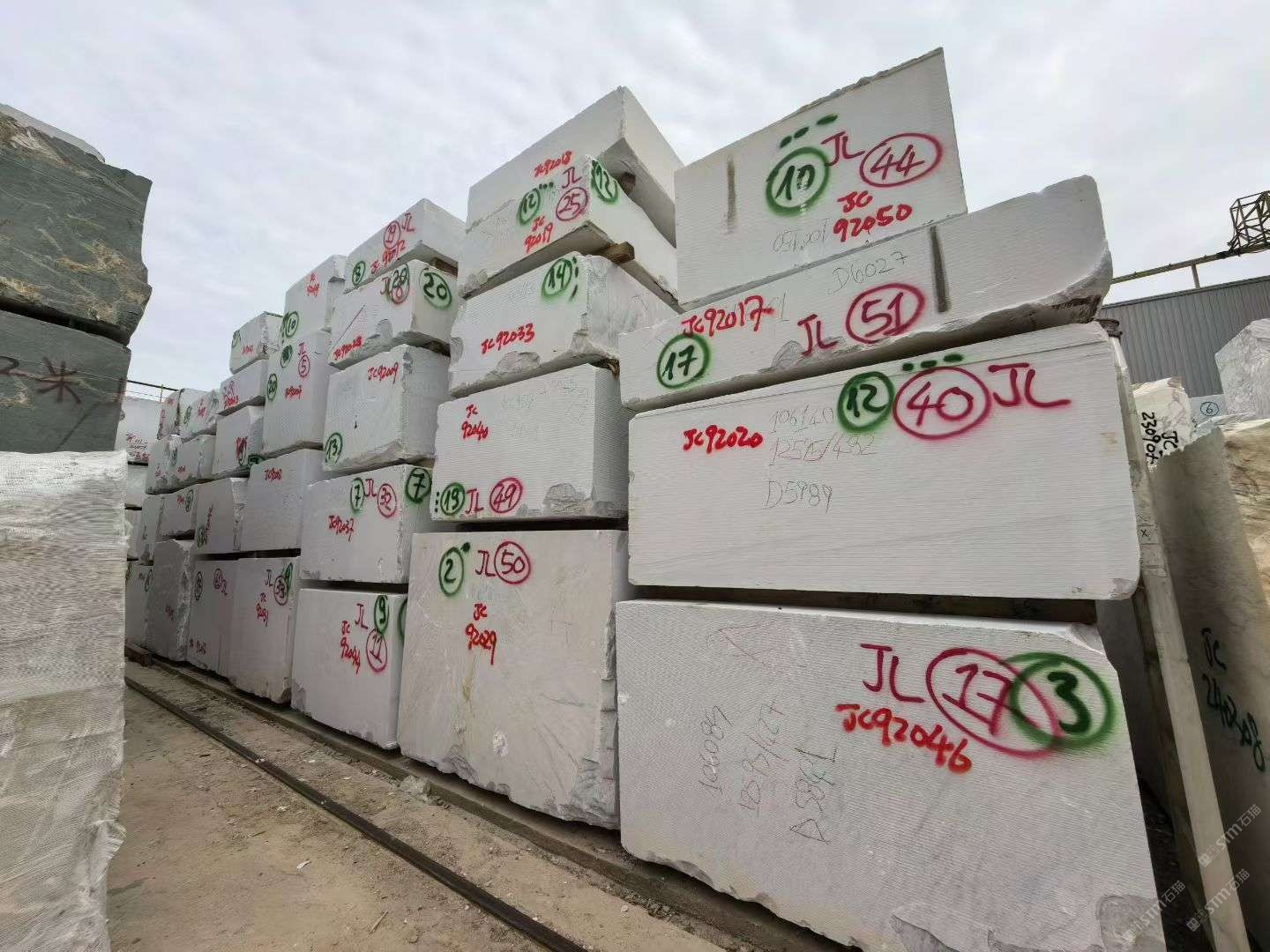 大花白、魚(yú)肚金、寶格麗、卡地亞白,細(xì)紋雪花白(大量荒料批發(fā))、