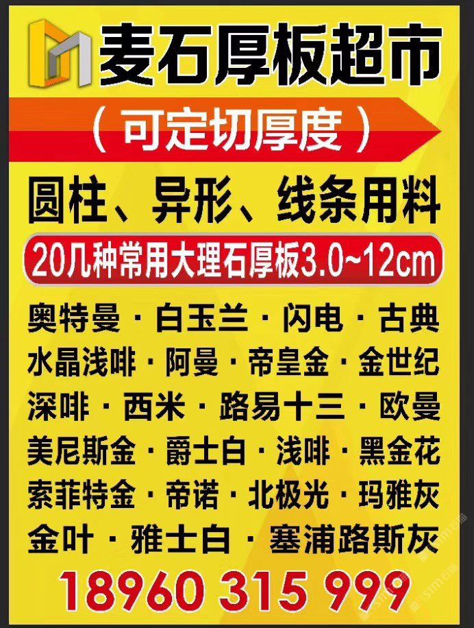 正常板大量庫存:、索菲特金、歐曼米黃、金葉米黃、北極光、塞浦路斯灰、橄欖灰、帝王灰。閩都大理石厚板超市長期30幾種常用現(xiàn)貨供應3cm-6cm厚板、正常板