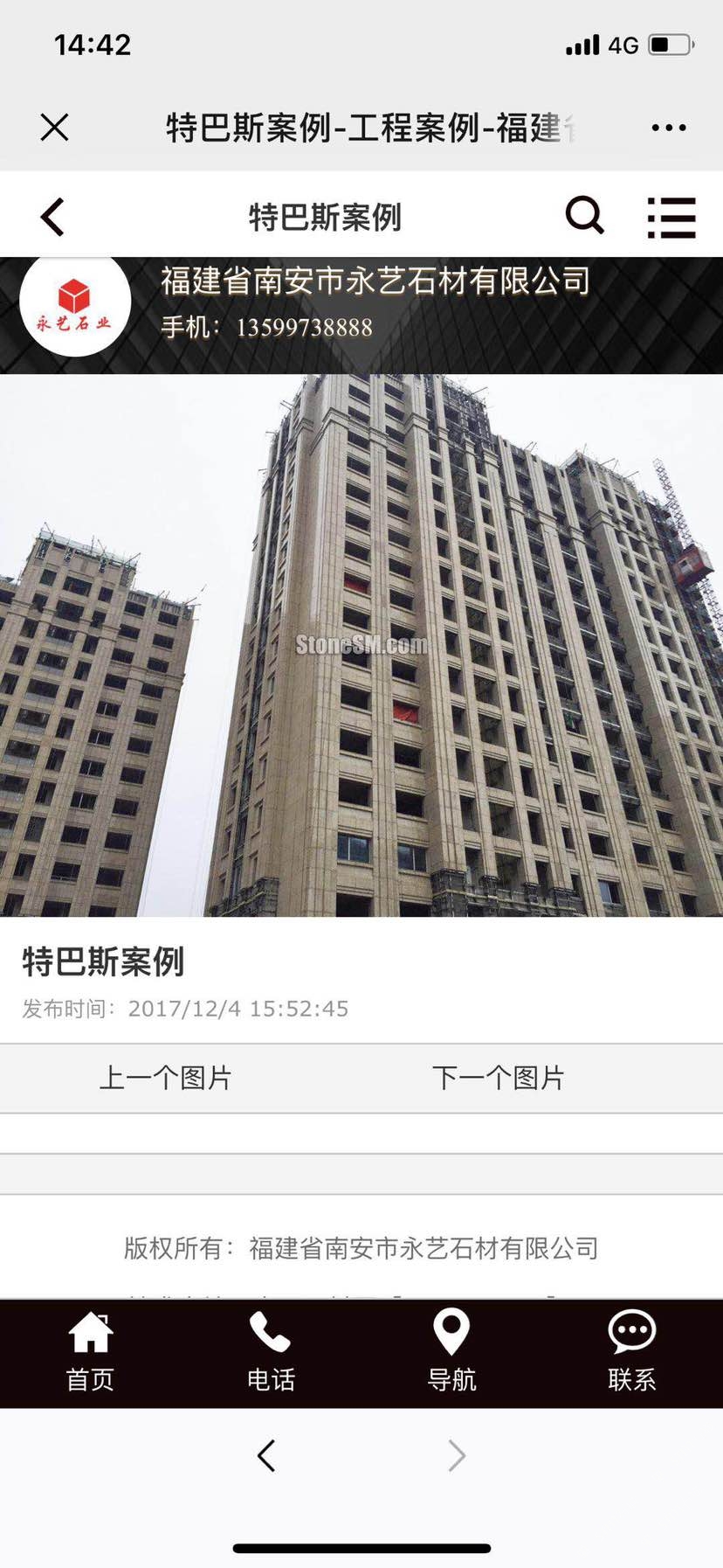 祥佑?永藝石業(yè) 聯(lián)系人:陳小姐    150****7792 查看 手機(jī)號碼:無 主營范圍: 石材工程資質(zhì)企業(yè)、石材外貿(mào)、荒料、花崗巖加工、大板批發(fā)、 企業(yè)地址:福建泉州南安市S201(返頭北路)福建省南安市祥佑石業(yè)有限公司