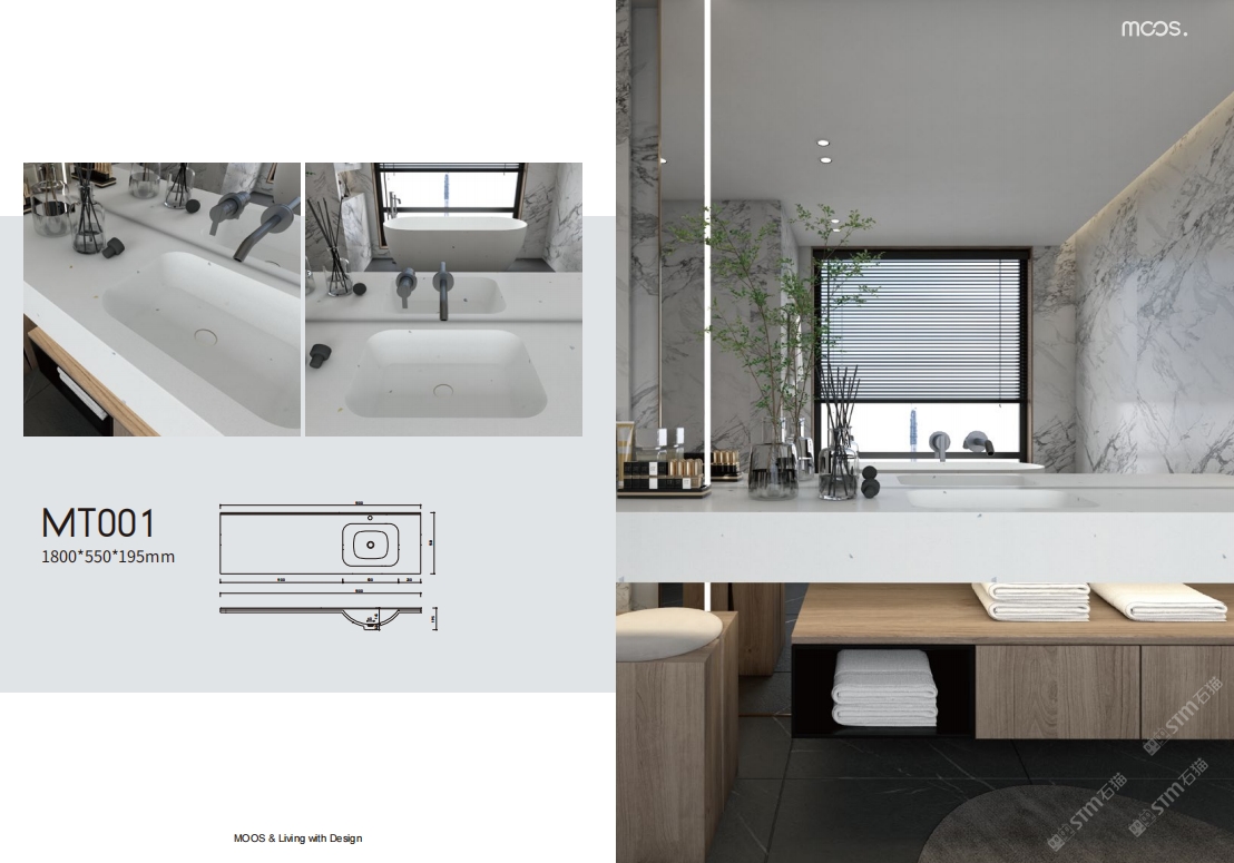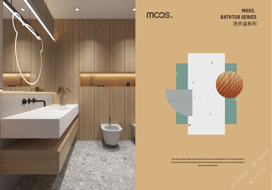 「MOOS魔石衛(wèi)浴」無機水磨石一體化臺盆設計