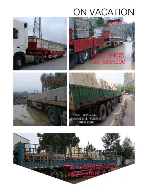 發(fā)布信息: 水頭三益物流 專(zhuān)業(yè)承接石材,機(jī)械運(yùn)輸! 供應(yīng)各類(lèi)大小車(chē)型! 13015885200(小陸)水頭三益物流