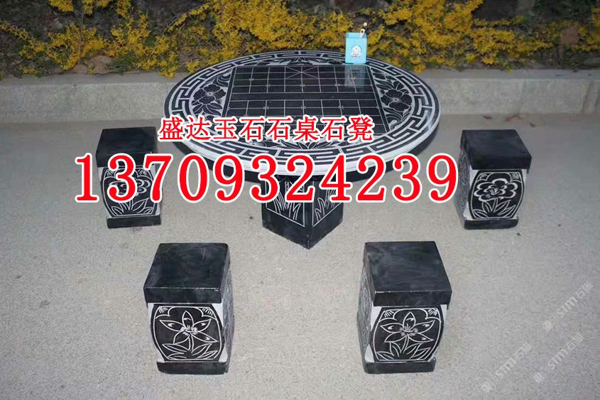 芝麻黑花崗巖石桌石凳g654石材圓凳公園庭院擺件