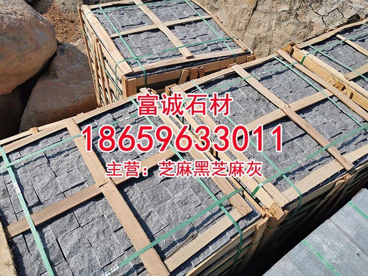 龍海g654自然面方塊石新礦芝麻黑馬蹄石彈石鋪路石