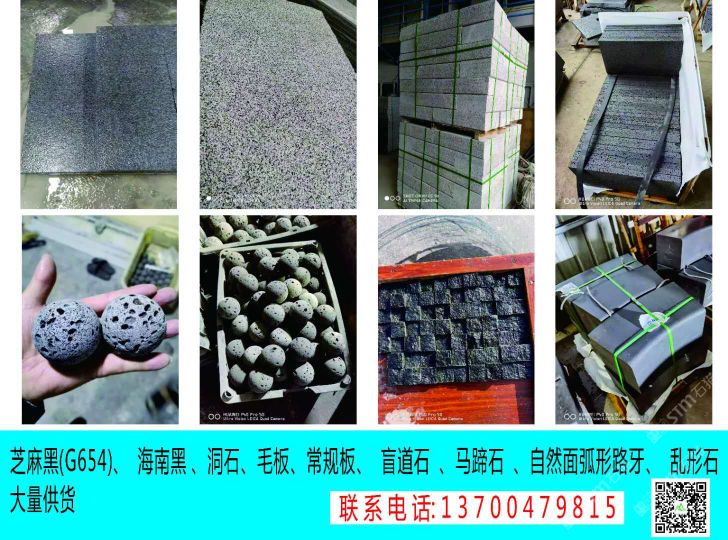 發(fā)布信息: 廠家直銷 廠礦一體 【主營】: 芝麻黑(新654),海南黑,火山巖,洞石等各種路沿石 火燒面、光面、荔枝面、機切面、蘑菇石、墓碑料、 自然面、盲道石、拉絲面,菠蘿面、異形加工等!承接國內外工程單,園林地鋪,外墻干掛等。規(guī)格齊全 保質保量, 歡迎新老客戶來電洽談合作!聯系電話: 13700479815小林