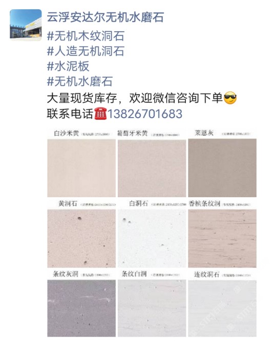 發(fā)布信息: #無機(jī)木紋洞石 #人造無機(jī)洞石 #水泥板 #無機(jī)水磨石 大量現(xiàn)貨庫存,歡迎微信咨詢下單[得意] 聯(lián)系電話??13826701683