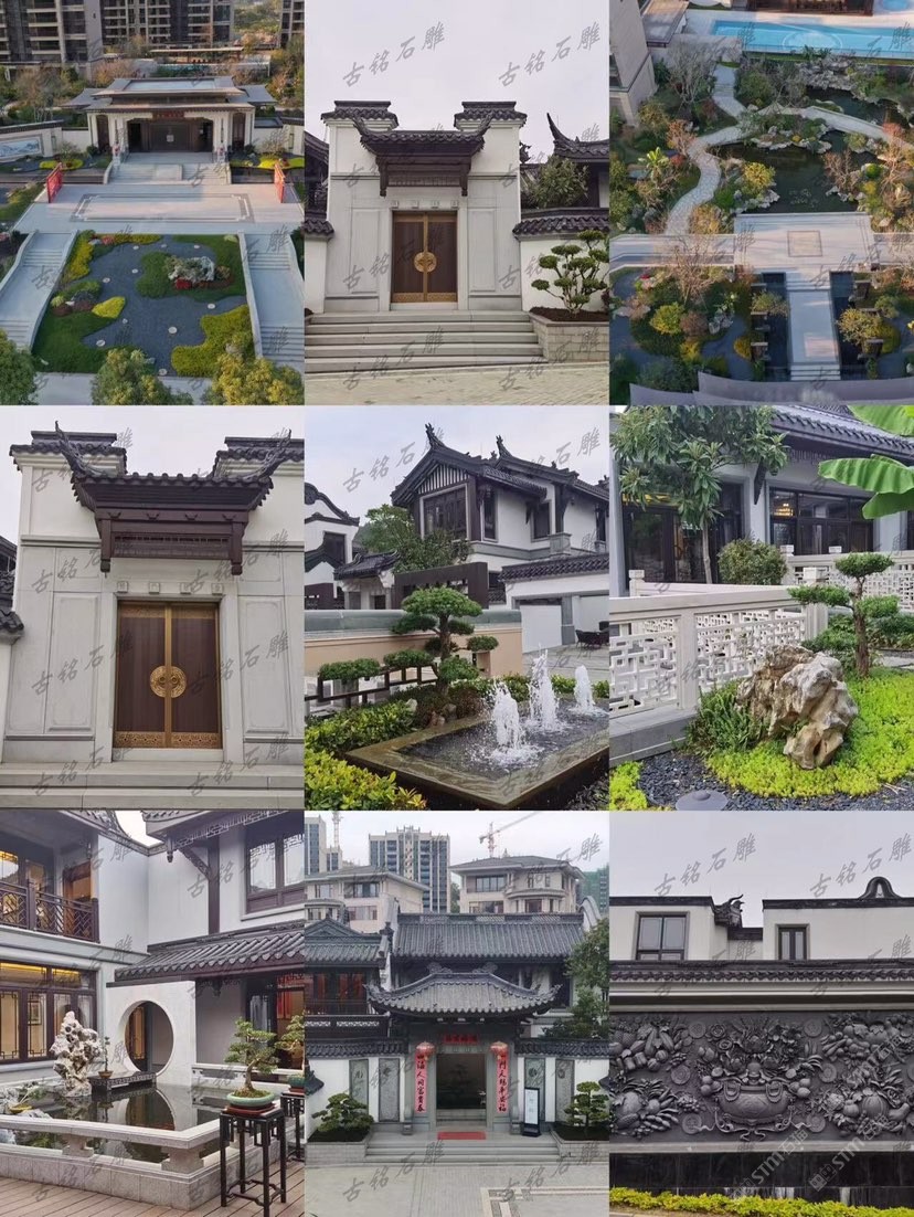 雕刻石雕大門門口擺設(shè)窗戶欄桿圍墻過門地面雕刻照壁