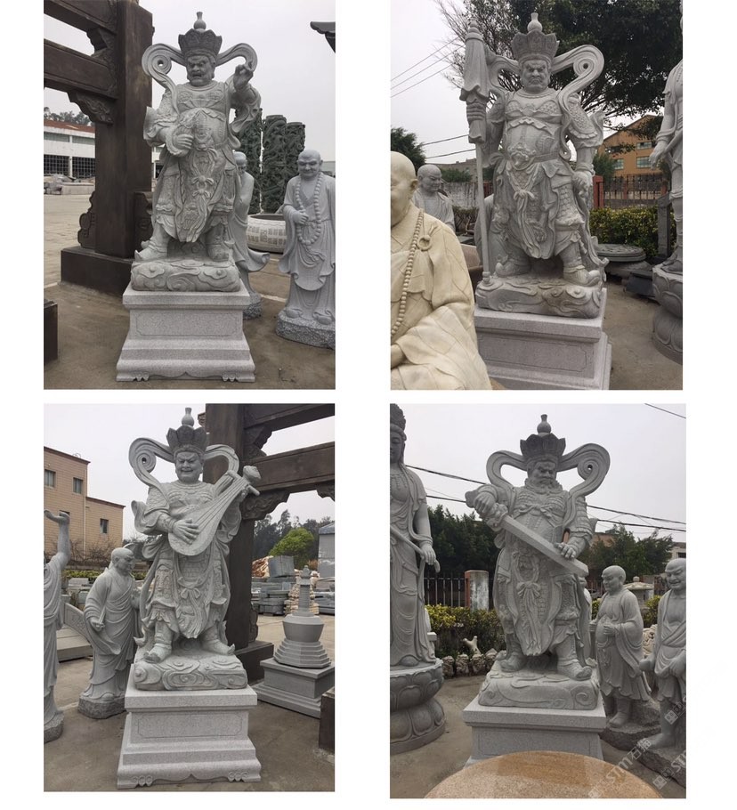 四大天王石雕像浮雕雕刻四大金剛護法寺廟