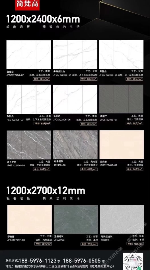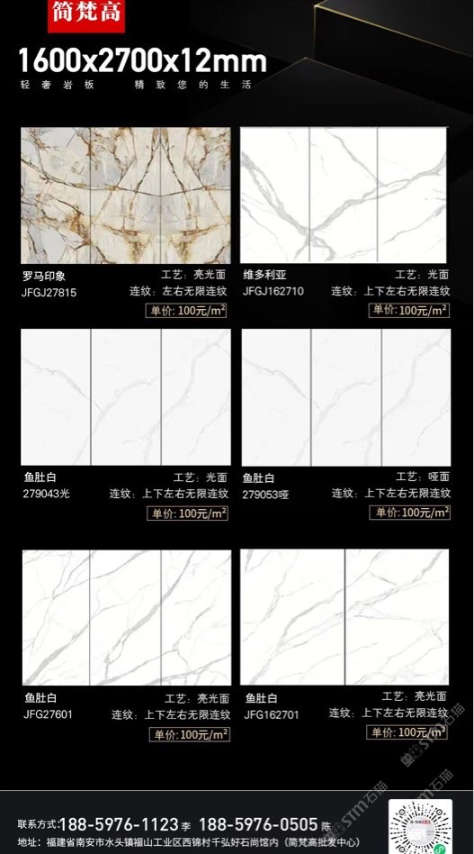 簡梵高巖板(批發(fā)) 聯(lián)系人:陳先生    188****0505 查看 手機(jī)號碼:無 主營范圍: 大板批發(fā)、環(huán)境石材、人造石加工、 企業(yè)地址:福建南安水頭鎮(zhèn)福山工業(yè)西錦村千弘好石尚館內(nèi)(批發(fā)中心)