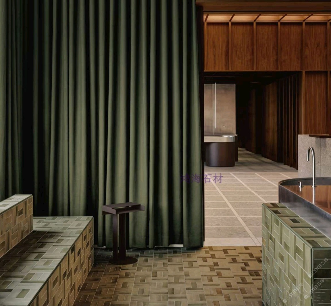 發(fā)布信息: 鴻海石材為皮膚科診所打造差異化空間,突破傳統(tǒng)醫(yī)療場所冰冷刻板的局限。設計融入金屬格柵與無機環(huán)氧水磨石等材質(zhì)形成呼應,滑動穿孔面板實現(xiàn)醫(yī)療與咖啡休閑區(qū)的靈活切換,深綠窗簾、紅色絲絨座椅與綠色水磨石交錯鋪貼,營造出堪比高端水療中心的溫潤療愈氛圍。