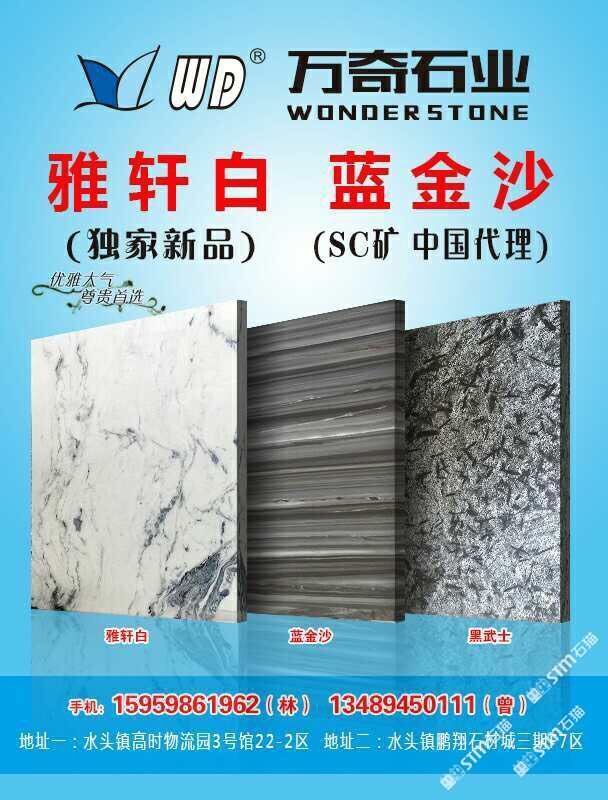 廈門萬奇石業(yè)有限公司 聯(lián)系人:林    139****0886 查看 136****3711 查看 主營范圍: 大板批發(fā)、荒料、大理石加工、石材外貿(mào)、 企業(yè)地址:福建泉州南安市水頭鎮(zhèn)海聯(lián)聯(lián)福大板市場6號門