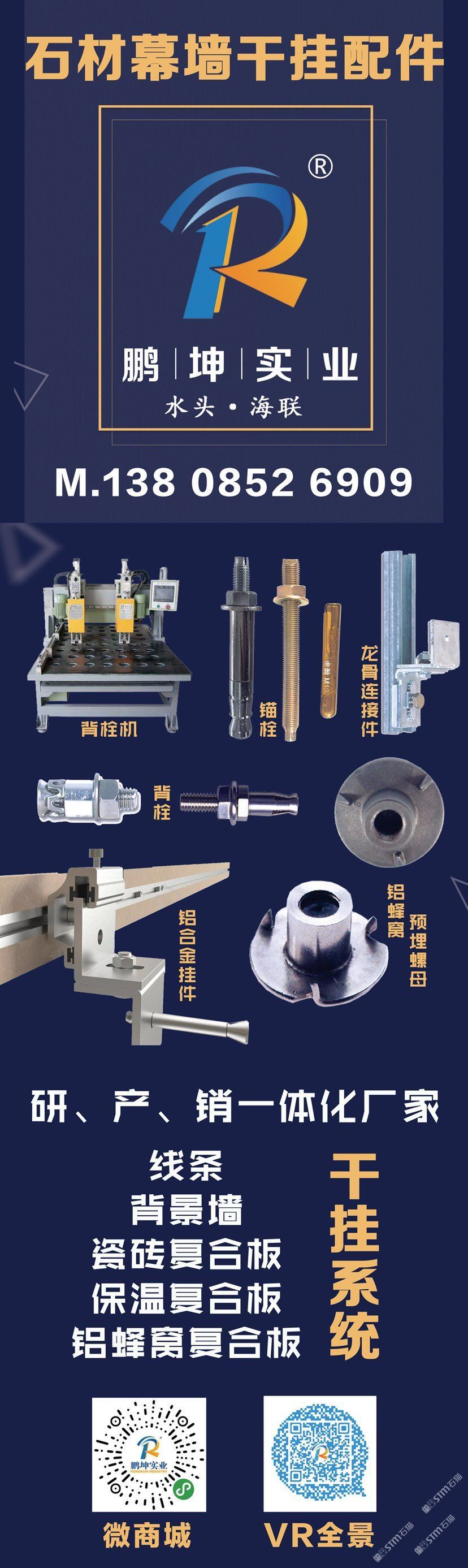商圈 > 背栓干掛 > 石材干掛系統(tǒng)、專利背栓、鋁蜂窩預(yù)埋螺母、龍骨連接件