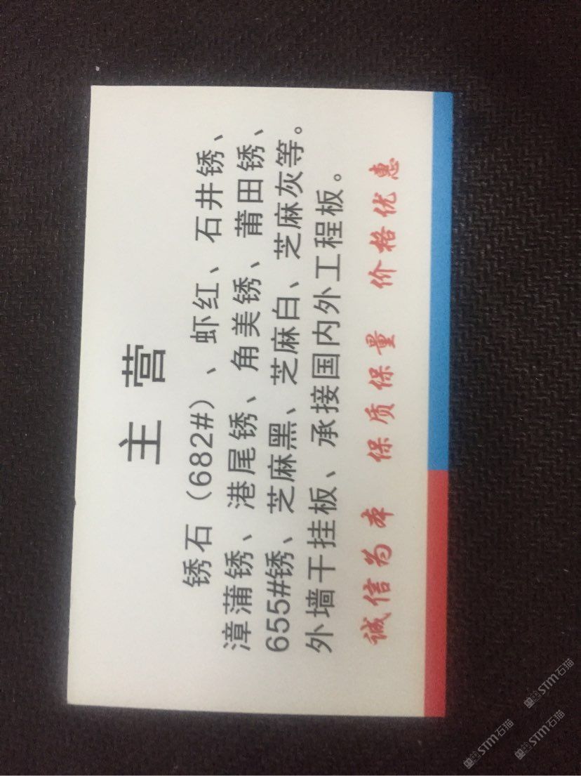 南安市石井景興石材廠 聯(lián)系人:洪    139****5952 查看 139****5952 查看 主營范圍: 大板批發(fā)、花崗巖加工、 企業(yè)地址:福建泉州石井鎮(zhèn)東濱工業(yè)區(qū)(沿海大通道路口紅綠燈旁)
