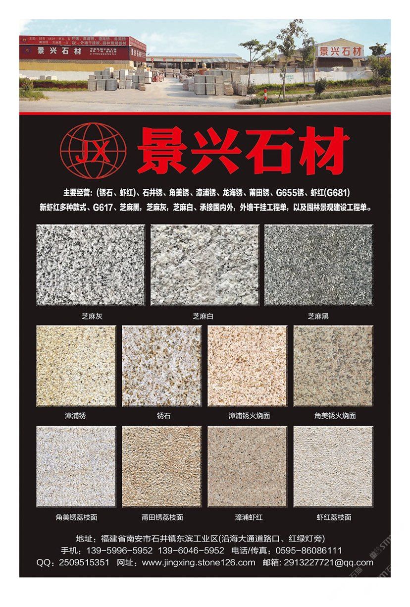 南安市石井景興石材廠 聯(lián)系人:洪    139****5952 查看 139****5952 查看 主營范圍: 大板批發(fā)、花崗巖加工、 企業(yè)地址:福建泉州石井鎮(zhèn)東濱工業(yè)區(qū)(沿海大通道路口紅綠燈旁)