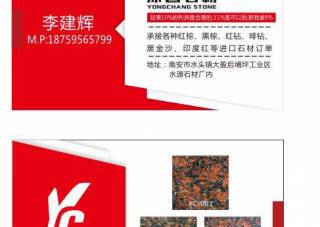 啟豐石業(yè)主營(yíng)產(chǎn)品:銹石,蝦紅,黃金麻3,幻彩紅6,紫金蘭,檀香啡(巴西礦),英國(guó)棕2企業(yè)地址:福建泉州水頭建材市場(chǎng)35棟4號(hào)啟豐石業(yè)