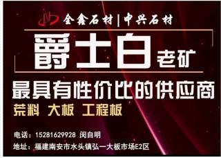 東升白石部主營(yíng)產(chǎn)品:爵士白,雅士白,雅士白(希臘礦),雅士白1,雅士白(新礦),雅士白(希臘),爵士白(老礦),爵士白2,爵士白(新礦),爵士白(大礦)企業(yè)地址:福建泉州立信大板市場(chǎng)②號(hào)門(mén)出口