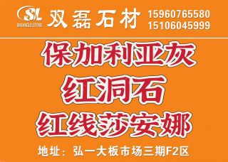 雙磊石業(yè)主營(yíng)產(chǎn)品:保加利亞灰,月光灰,歐典米黃(老礦),塞浦路斯灰,紅線莎安娜米黃,紅線莎安娜,紅洞石,粉紅洞石,伊朗紅洞,羅馬洞石,羅馬洞企業(yè)地址:福建泉州水頭鎮(zhèn)東升石材超市3通道B4