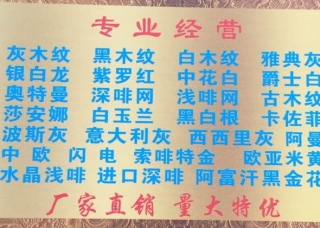 福建省德潤石業(yè)主營產(chǎn)品:城堡灰,冰島白,卡索灰,月亮灰1,深啡摩卡,金錢花,克羅地亞,克羅地亞(中,小花),蝴蝶灰(意大利礦),卡索灰2,卡索灰(意大利礦)企業(yè)地址:福建泉州水頭澳華廠霍馬礦業(yè)15159827223