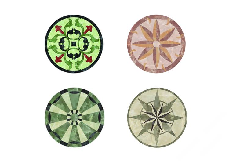 描述:石材水刀拼花是目前市場上最常見的水刀拼花,是利用水刀將各種顏色的石材切割成需要的造型,再用膠水拼接而成?,F(xiàn)階段石材拼花主要應(yīng)用在星級酒店,大型商場,別墅,家裝的客廳,餐廳和玄關(guān),是目前石材裝飾中效果最好最為絢麗高貴的裝飾產(chǎn)品。